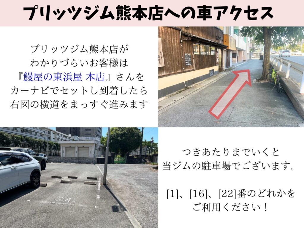 プリッツジム熊本店は無料駐車場も完備している、女性専用の低料金型パーソナルジム&ピラティスです。