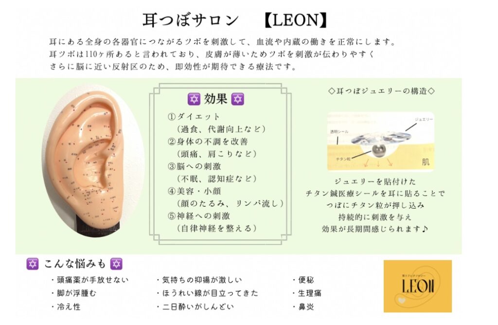 耳つぼサロン【LEON】のホームページをご覧いただきありがとうございます。