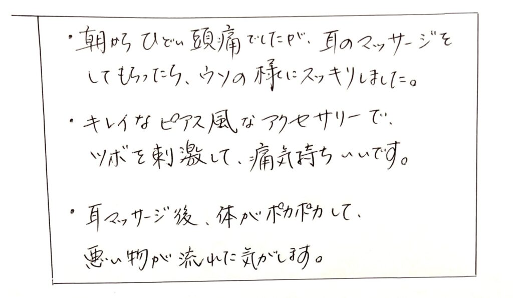 耳をケアすることの身体の変化を体感していただると嬉しいです。