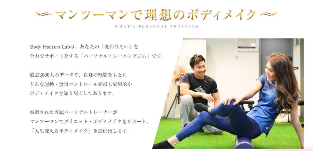 パーソナルレッスンはもちろんですが、メールによる食事相談など痒いところに手が届くようなサービスが支持を受けています。