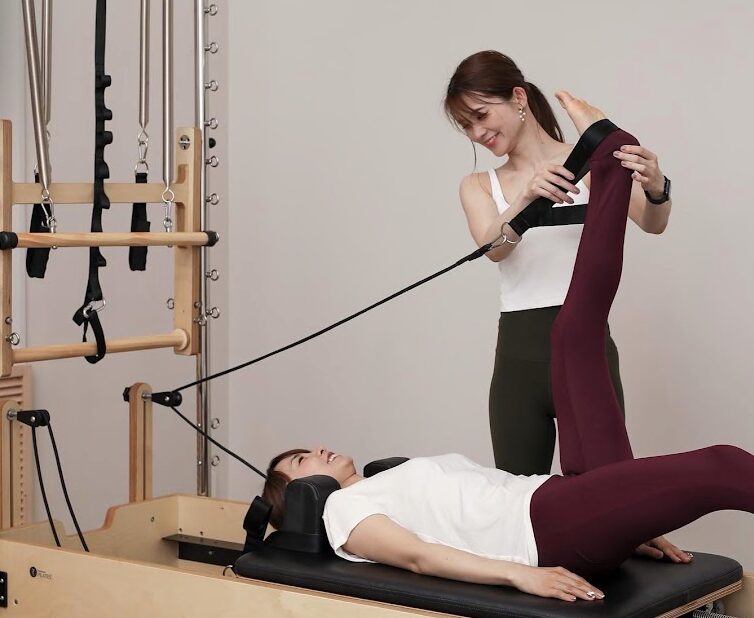 リフォーマー、キャデラック、チェアなど本格的なマシンを完備しており、1,000種類以上のエクササイズに対応しています。24時間いつでも専用のコミュニティや個別のLINEで相談でき、自宅ケア動画の撮影サービスなどアフターフォローも充実しています。
