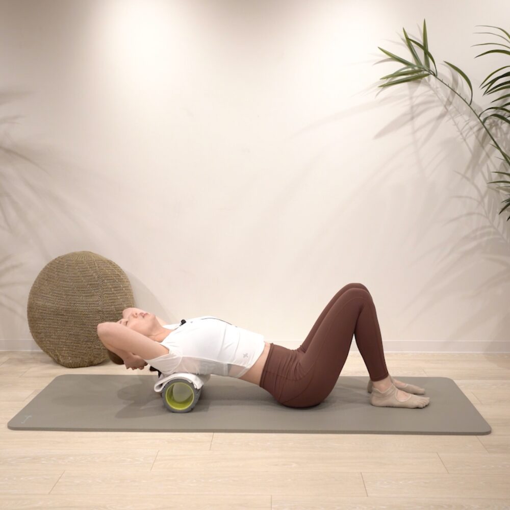 フォームローラーを使って背中をリリース。背中がほぐれて美姿勢に繋がります。