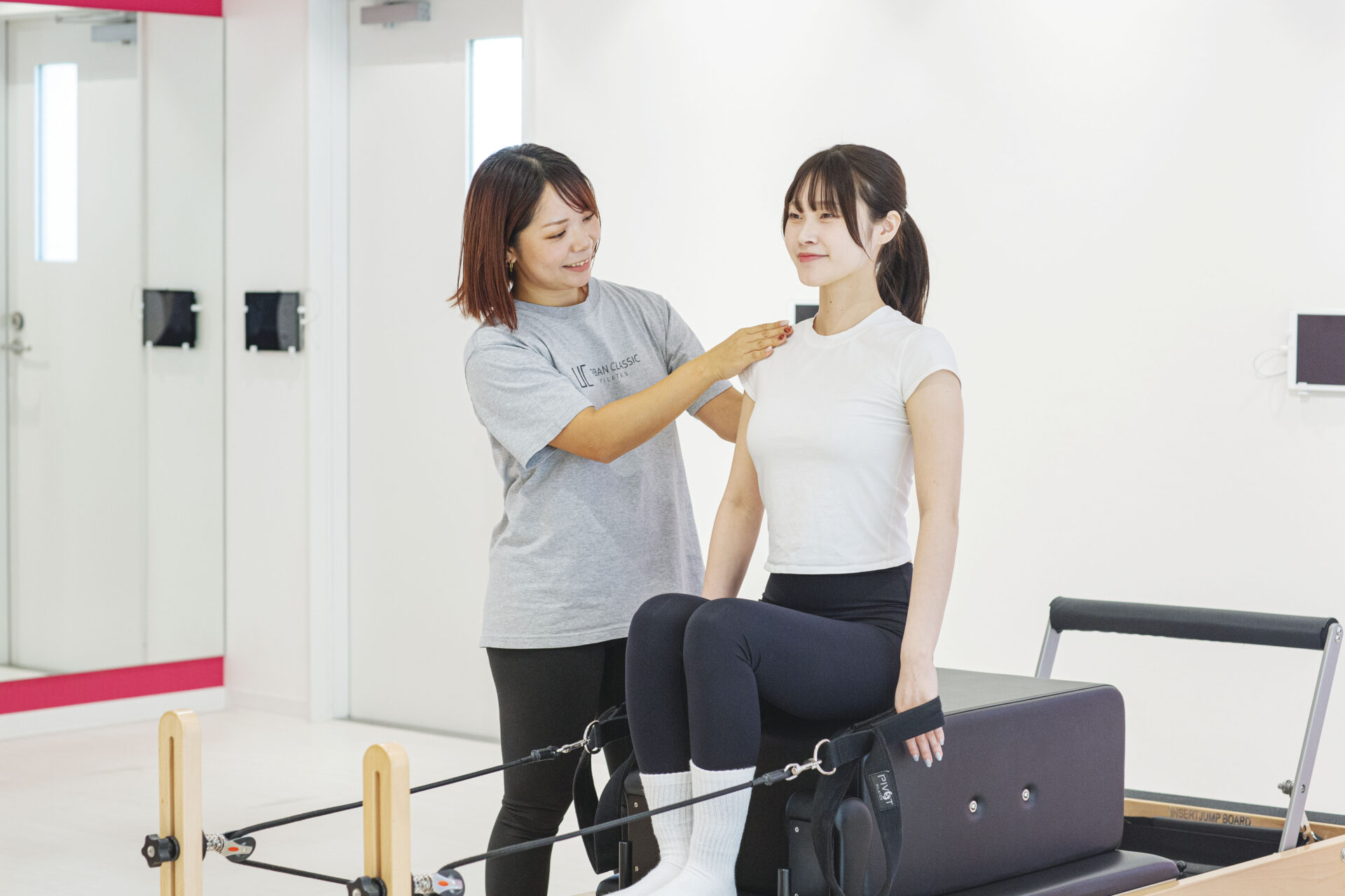 フォームの乱れをその場で指導してもらえるので、ピラティスが初めての方でも安心して取り組めます。